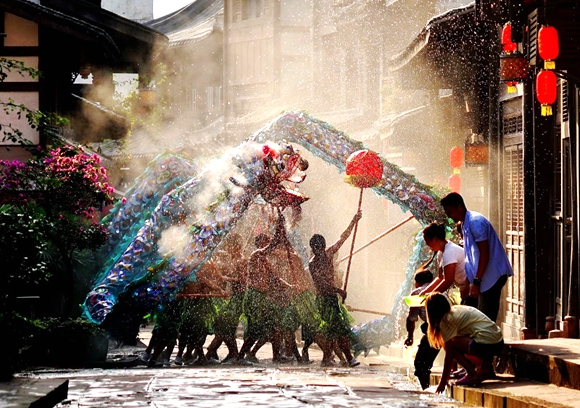目前,安居恢復、保留了打糍粑、包粽子、刻章、打爆米花等傳統(tǒng)生活習俗,在這里,還可以看到獨具安居特色的民俗文化活動,比如縣令出巡、旱船、迎親、金錢板、舞龍、舞獅、水云龍表演等。