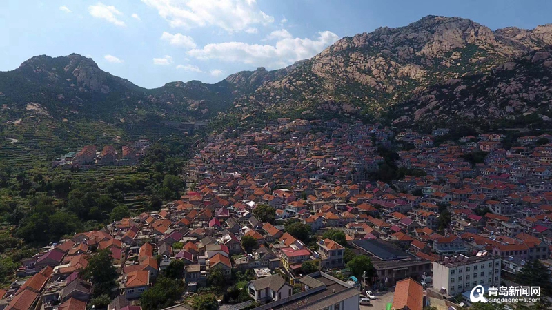 如今來到青山村,在青島嶗山腳下,沿盤山公路緩緩而下,美麗的青山村就撲面而來。紅瓦石墻、依山而建、錯落有致的村居,在藍(lán)天碧海的映襯下顯得分外奪目,村子兩旁的山坡上是碧綠的茶園,村后是高聳入云的巨石山峰,村前是碧藍(lán)的大海。青山、梯田、茶園、村落、漁港、海洋相互映襯,共同形成了一道層次分明、錯落有致的優(yōu)美漁村風(fēng)景,構(gòu)成了一副壯麗的山、海、天畫卷。