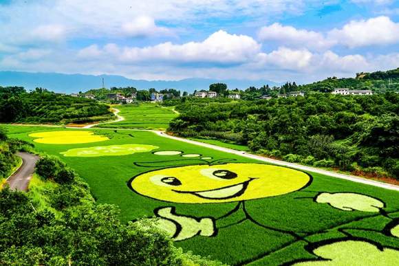 而半月前,這里種植的彩色水稻組成笑臉圖案,以及“中國夢”、“三峽橘鄉(xiāng)田園綜合體”等字樣,與周邊的村莊、山巒、樹木相映成趣,成為“三峽橘鄉(xiāng)”田園綜合體一道靚麗風(fēng)景。
