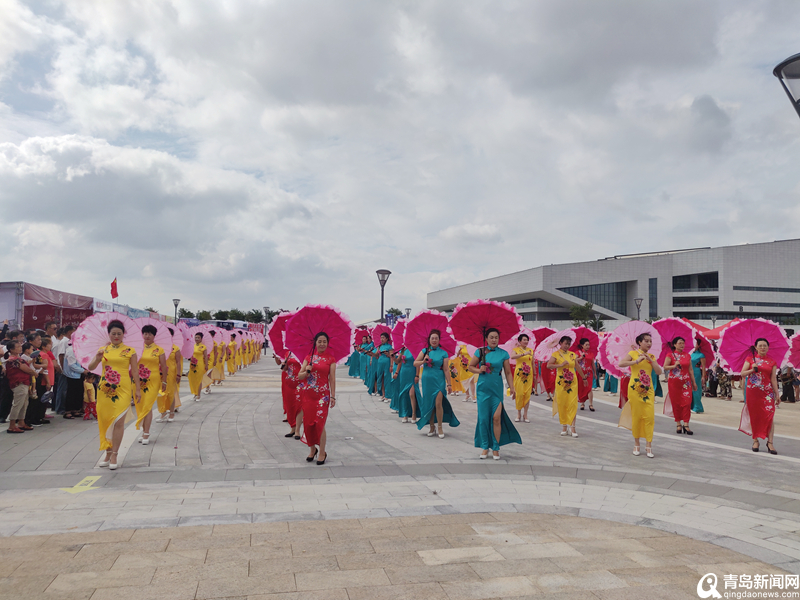 響應(yīng)時(shí)尚青島建設(shè)號(hào)召,開(kāi)幕式上,舉辦了盛大的文藝演出。靚麗的身影、多彩的旗袍,再加上紅色的油紙傘舞動(dòng),120人參演的獻(xiàn)禮國(guó)慶大型旗袍秀,40人一組以“紅黃綠”三種主題顏色擺出“國(guó)”“慶”“70”字樣,向偉大祖國(guó)70華誕獻(xiàn)禮?!霸谶@樣一個(gè)日子,能參加演出,還有這么多人看,真是非常開(kāi)心,也非常有紀(jì)念意義?!眳⒀萑藛T紛紛表示。