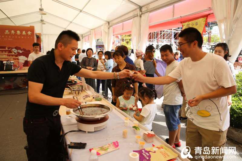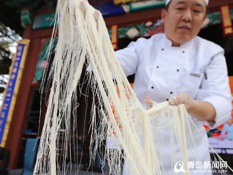 整個開幕式活動亮點不斷、精彩紛呈,既有源自春秋戰(zhàn)國時期的孔府菜燕禮表演,又有《魯菜》紀(jì)錄片片花首次公映,多位魯菜烹飪大師上演了快速雕花、蒙眼剔布袋雞、拉面等“絕技絕活”,讓現(xiàn)場的觀眾大開眼界。吃的方面就更目不暇接,在古城的綠色食材展、特色小吃一條街上,來自全省16市的地域名吃、網(wǎng)紅小吃琳瑯滿目,專門從重慶邀請的特色餐飲企業(yè)帶來了地道的重慶小面,麻辣鮮香的味道令人饞涎欲滴?!皾?jì)南菜、孔府菜、膠東菜……這下可以一站式嘗遍魯菜了!”來自江蘇揚(yáng)州的徐先生一家三口都是“吃貨”,來即墨古城旅游意外趕上“齊魯金秋美食月”開幕很是驚喜,一家人前一天剛爬完嶗山入住在古城君瀾酒店,原本打算第二天離開青島,為了吃遍古城美食一家人決定多住兩晚再回江蘇。