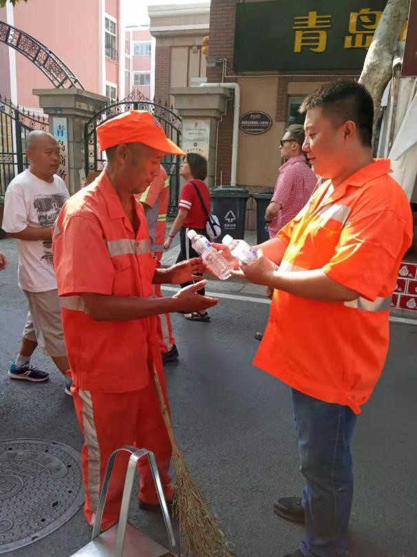 同時(shí),考慮到一線作業(yè)人員頭頂烈日工作的辛苦,市北環(huán)衛(wèi)一公司在要求保證高質(zhì)量完成日常工作的前提下,為一線作業(yè)人員及時(shí)發(fā)放礦泉水,做好防暑降溫工作。使一線作業(yè)人員在炎炎夏日感受到絲絲清涼。
