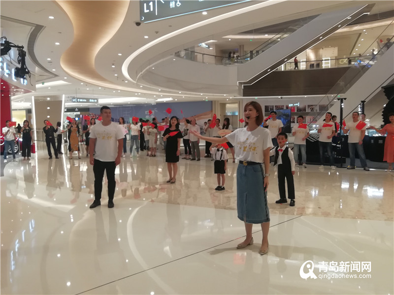 “祝人民幸福安康,祝祖國繁榮昌盛”。在嘹亮的歌聲里,在燦爛的笑容里,在揮舞的國旗里,《我和我的祖國》,這首熟悉的旋律回蕩在青島萬象城。在快閃現(xiàn)場,鮮艷的五星紅旗,激情澎湃的歌聲、活力四射的舞蹈,匯聚成靚麗壯觀的圖景,奏響了祥和美好的感人樂章。大家揮動(dòng)著手中的五星紅旗,高唱著祖國母親之歌,心中流淌的是源源的愛河,臉上洋溢的是幸福的情愫。來自湛山街道的叔叔阿姨傾情加盟,和華潤員工齊聲高唱,將活動(dòng)推向了高潮。
