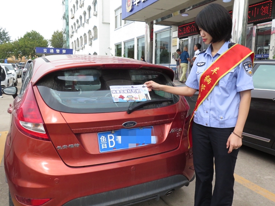 交警為參賽車主貼上“好司機(jī)車貼”。