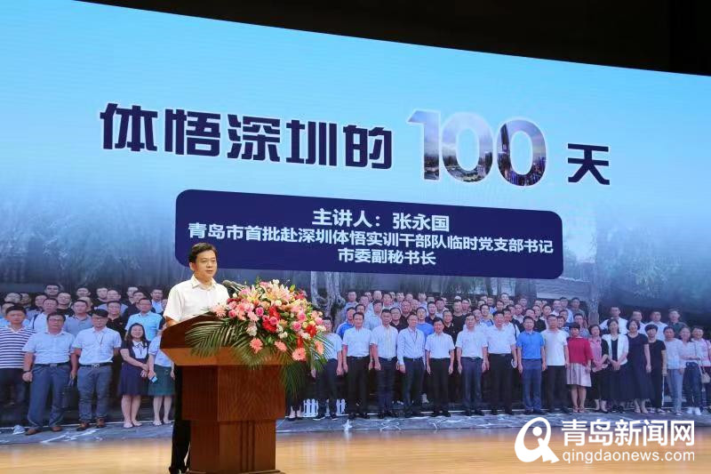 青島新聞網(wǎng)9月21日訊(記者 丁淑華)9月21日,青島市首批赴深圳體悟?qū)嵱?xùn)成果宣講團(tuán)報(bào)告會(huì)在嶗山區(qū)市民文化中心舉行。市委副秘書長、首批體悟?qū)嵱?xùn)干部隊(duì)臨時(shí)黨支部書記張永國同志,帶領(lǐng)8位首批赴深圳干部組成宣講團(tuán),結(jié)合在深圳的所見所聞所思所感,從我眼中的深圳——“敢、為、人、先”和我心中的青島——“比、學(xué)、趕、超”八個(gè)方面分享心得感悟。