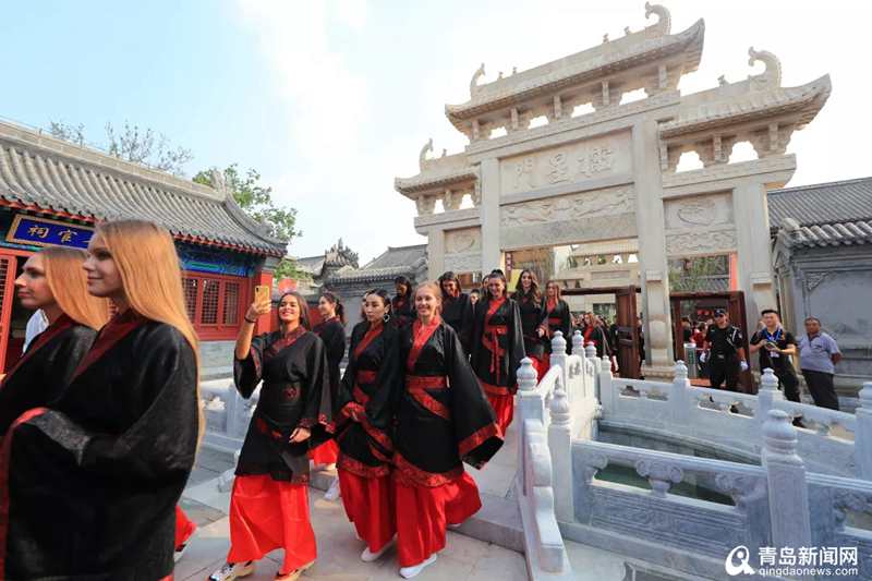青島新聞網(wǎng)9月25日訊 體驗(yàn)傳統(tǒng)入城迎賓禮、觀賞六藝展演、欣賞中國(guó)編鐘編磬演奏、文廟觀看“拜師禮”、君瀾度假酒店體驗(yàn)中國(guó)茶藝、美術(shù)館學(xué)習(xí)書(shū)法、與即墨非遺傳承人互動(dòng)交流……9月23日-24日,來(lái)自俄羅斯、美國(guó)、法國(guó)、意大利、澳大利亞等67個(gè)國(guó)家和地區(qū)的67名佳麗齊聚即墨古城,參加2019世界旅游小姐全球集結(jié)儀式。獨(dú)具匠心的東方建筑神韻遇上異國(guó)風(fēng)情的文旅盛會(huì),為秋日古城注入激情、時(shí)尚與活力。
