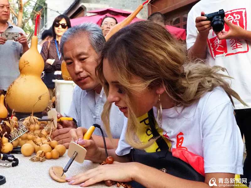 她們?cè)诩茨懦敲佬g(shù)館學(xué)習(xí)中國(guó)書(shū)法,感受水與墨的交融;君瀾度假酒店觀看中國(guó)茶道表演,品味茶的清芳與藝的典雅;漫步東西門(mén)里大街,與即墨大鼓書(shū)、竹編、烙畫(huà)、花邊等非遺傳承人交流;于澳洲1847酒莊,品嘗紅酒的濃郁醇香;去勞山書(shū)院,體悟東方文化意蘊(yùn);走進(jìn)尚錦秀、三方七合等商鋪,體驗(yàn)中國(guó)旗袍文化和服裝設(shè)計(jì)魅力……
