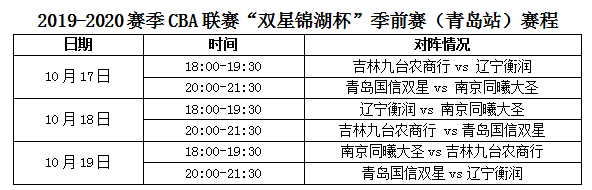 2019-2020賽季CBA聯(lián)賽“雙星錦湖杯”季前賽(青島站)將于10月17日至19日在青島國(guó)信體育館開(kāi)賽,以單循環(huán)制的方式展開(kāi)爭(zhēng)奪,青島國(guó)信雙星隊(duì)將先后與南京同曦大圣隊(duì)、吉林九臺(tái)農(nóng)商行隊(duì)和遼寧衡潤(rùn)隊(duì)一一對(duì)話(huà)。由于今年CBA季前賽距離新賽季開(kāi)始僅有不到兩周的時(shí)間,因此各支球隊(duì)基本都會(huì)以全主力陣容出戰(zhàn),像是眾星云集的遼寧隊(duì)不僅有郭艾倫、趙繼偉兩位國(guó)手出戰(zhàn),新引進(jìn)的“師弟”蘭斯·史蒂芬森也具備了極高的知名度;江蘇隊(duì)的亞布塞萊和吉林隊(duì)的多米尼克·瓊斯同樣是在NBA小有名氣的悍將,特別是以三外援壓陣的江蘇隊(duì)同樣是青島隊(duì)在沖擊季后賽道路上的潛在競(jìng)爭(zhēng)對(duì)手。