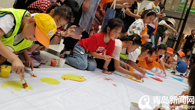 另一處活動(dòng)場地上,60余名小朋友正在共繪以“妙筆童心、繪夢祖國”為主題的長卷,用最真的筆觸、最實(shí)的情感向祖國致敬,用最美的形式歌頌祖國發(fā)展成就,映照新時(shí)代美好生活,展現(xiàn)島城靚麗美景。