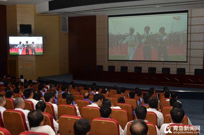 即墨區(qū)組織收聽收看國慶閱兵儀式直播。(邢志峰 攝)
