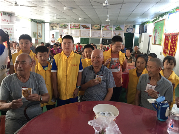 公益志愿者和隊(duì)員們不僅為爺爺奶奶準(zhǔn)備了慰問(wèn)品,還為爺爺奶奶帶去了自己精心準(zhǔn)備的表演節(jié)目以及自己親手制作的節(jié)日賀卡。老人們邊吃著香甜的糕點(diǎn),邊興奮的觀看著演出,臉上洋溢著幸福的笑容。演出在《詩(shī)朗誦》中拉開(kāi)了序幕,隊(duì)員們先后表演了口風(fēng)琴獨(dú)奏、舞蹈、獨(dú)唱、快板等十幾個(gè)節(jié)目,給老人們帶來(lái)陣陣歡笑。老人們欣慰地享受著孩子們帶來(lái)的關(guān)愛(ài)、幸福。