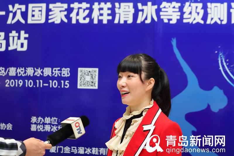 青島喜悅滑冰俱樂(lè)部董事長(zhǎng)關(guān)姝接受采訪。