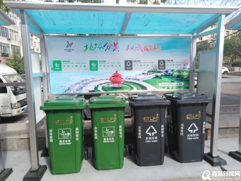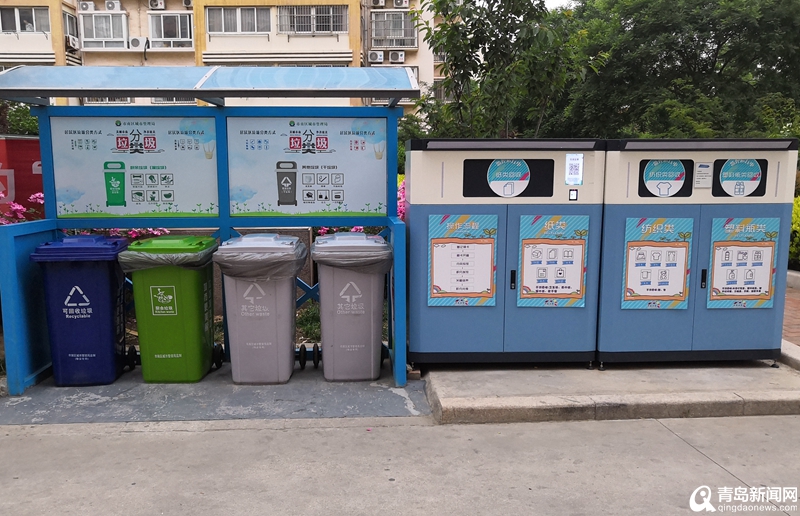 香港中路街道垃圾分類收集容器。