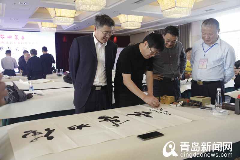 青島新聞網(wǎng)10月18日訊(陳志偉 張嬙)今天下午,在結(jié)束了上午的青島澳門兩地職工書畫攝影聯(lián)展開幕儀式后,來自青島澳門的20余位書畫名家齊聚湛山花園酒店,揮毫潑墨、寫意丹青,用飽含激情的藝術(shù)作品表達了對祖國的深厚感情和美好祝福。