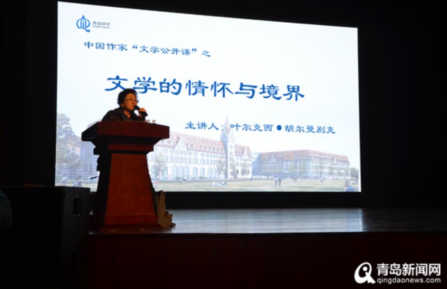 葉爾克西·胡爾曼別克在青島中學(xué)作題為“文學(xué)的情懷與境界”的講座。葉爾克西認(rèn)為:“好作品的背后,寫作者一定是有情懷的,而優(yōu)秀的寫作者背后,一定有一群具有情懷的人?!敝芙ㄐ略谥袊?guó)海洋大學(xué)與該校師生暢談小說創(chuàng)作,他說“小說創(chuàng)作也許可以概括為五個(gè)字:‘真實(shí)的謊言’,而小說研究的是‘不可能中的可能性’?!敝芙ㄐ抡J(rèn)為,駕馭“不可能中的可能性”要有廣博的學(xué)識(shí)、對(duì)社會(huì)生活廣泛的體驗(yàn)和深刻的思考以及禪一樣的心——扔掉所有的浮華與欲望。講座結(jié)束后,兩位作家與所在學(xué)校師生就文學(xué)閱讀和創(chuàng)作進(jìn)行了互動(dòng)交流。