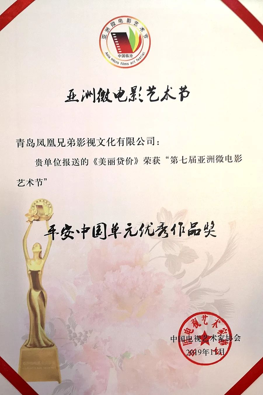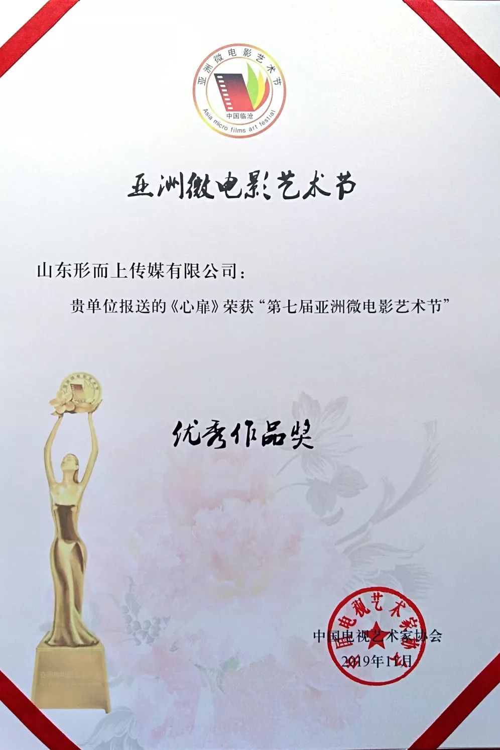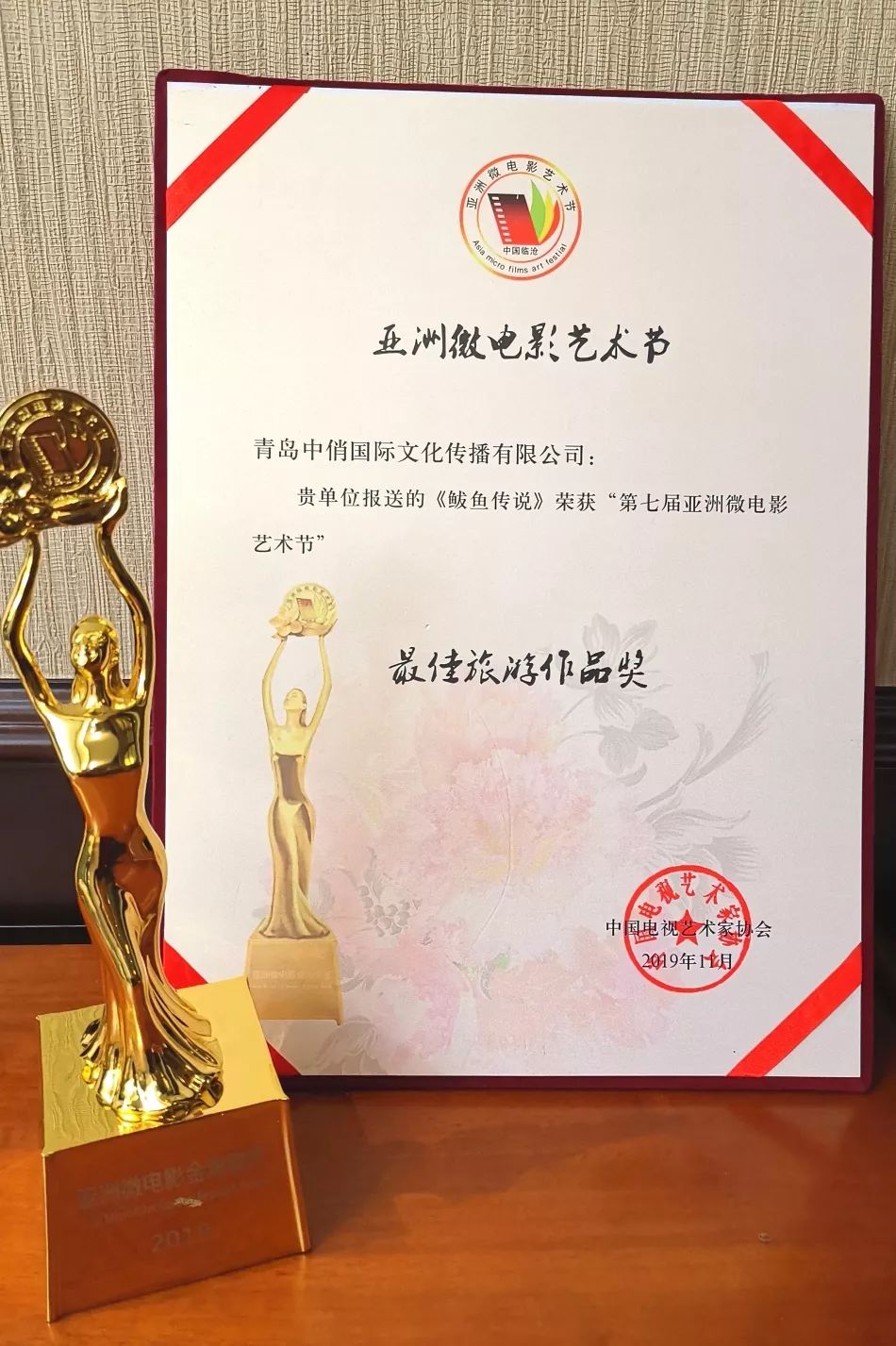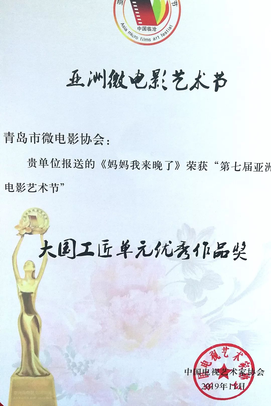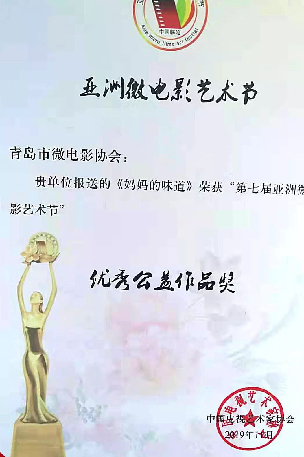青島市微電影協(xié)會(huì)副會(huì)長(zhǎng)路彤上臺(tái)領(lǐng)獎(jiǎng)
