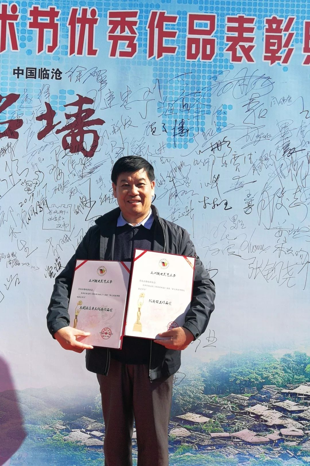 青島市微電影協(xié)會(huì)會(huì)長(zhǎng)賀志寶上臺(tái)領(lǐng)獎(jiǎng)