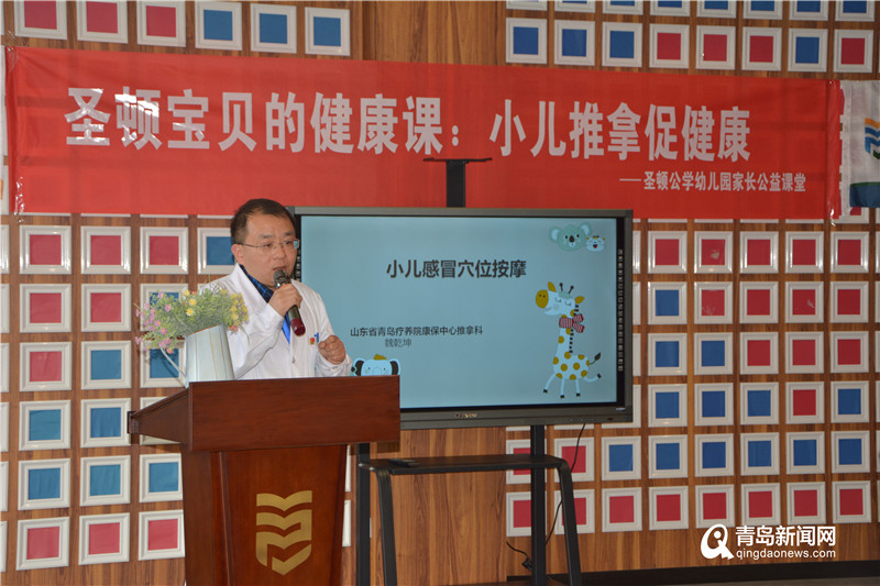 青島新聞網(wǎng)11月12日訊 為深入貫徹落實“不忘初心、牢記使命”主題教育,進一步推動“健康市南”建設(shè),11月12日下午,市南區(qū)衛(wèi)生健康局聯(lián)合山東省青島療養(yǎng)院康保中心走進青島市市南區(qū)圣頓公學幼兒園,共同開展“中醫(yī)進校園,小兒推拿促健康——圣頓公學幼兒園家長公益課堂”主題活動。山東省青島療養(yǎng)院康保中心推拿科主任魏乾坤給家長們帶來了生動、實用的健康知識講座。