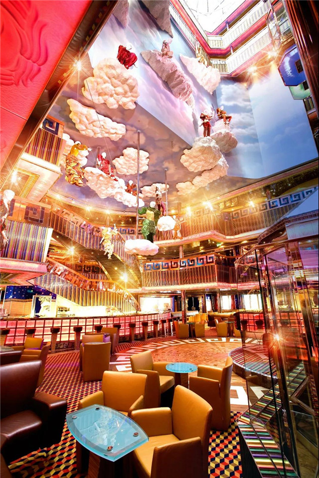 設(shè)計(jì)靈感源于羅馬競(jìng)技場(chǎng)的豪華宙斯大劇院,跨越三層甲板,輪番上演國(guó)際藝術(shù)家們的炫目演出。