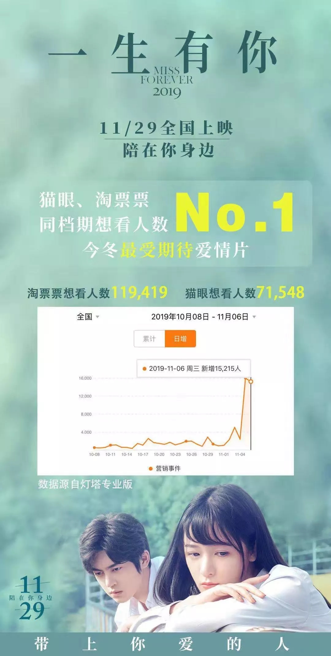備受期待的愛情電影,貓眼、淘票票同檔期想看人數(shù)NO.1的《一生有你》,將在即墨古城舉行青島路演活動,我們將再一次邂逅青春與愛情的美好和遺憾,感受年華帶給我們的歷練與成長。