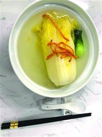 “膠州大白菜”具有“幫嫩薄、汁乳白、味鮮美、營(yíng)養(yǎng)好”等特點(diǎn),味道清脆,淡而有味,生食清脆可口,熟食風(fēng)味甘美。烹調(diào)大師們以膠州大白菜為主原料可以做出100多道菜品。由于酸辣白菜、五花肉白菜燉粉條等菜品家家都會(huì)做,記者就請(qǐng)島城名廚給大家做幾款在家里不常制作的白菜菜品。