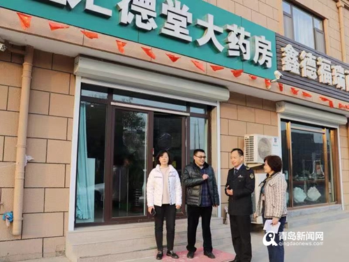 工作人員在張家下莊社區(qū)大德生藥房檢查。