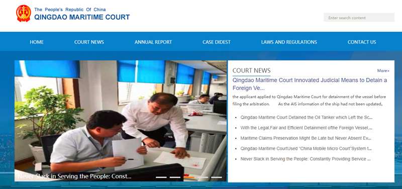 青島海事法院英文網(wǎng)站頁面截圖。