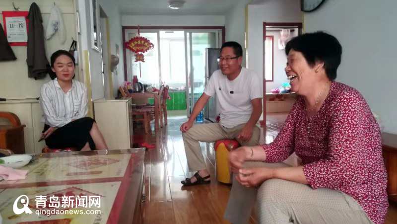 萊西市河頭店鎮(zhèn)工作人員到龍泉湖社區(qū)居民家中走訪,67歲的王清香(右一)搬進南北通透的新樓房樂得合不攏嘴。