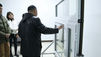 王恩輝董事長(zhǎng)向大家展示至慧科技研發(fā)的由翻轉(zhuǎn)窗和溫致變色遮陽(yáng)玻璃組成的世界首創(chuàng)超低能耗被動(dòng)窗。
