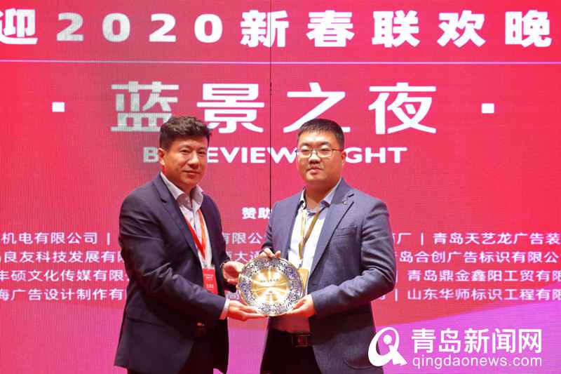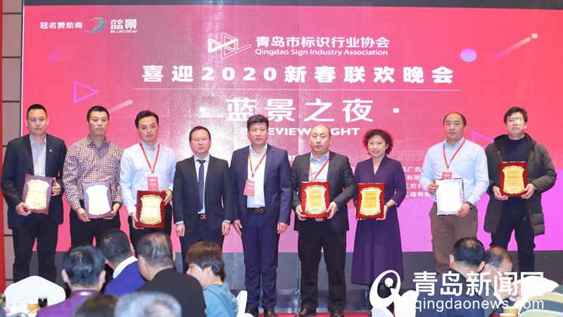 薛增志與趙力偉新老兩位會(huì)長為獲得突出貢獻(xiàn)獎(jiǎng)的青島遠(yuǎn)航偉業(yè)機(jī)電有限公司、雅圖高新材料有限公司、青島良友科技發(fā)展有限公司、青島源大通裝飾有限公司、青島天藝龍廣告裝飾有限公司、青島源泉燈箱廠、山東華獅標(biāo)識(shí)工程有限公司、青島合創(chuàng)廣告標(biāo)識(shí)有限公司、青島鑫豐碩文化傳媒有限公司、青島新色彩五米噴繪有限公司、青島旺海廣告設(shè)計(jì)制作有限公司、青島鼎金鑫陽工貿(mào)有限公司、山東高瑞光電科技有限公司、青島海博文化傳播有限公司14家單位代表授予獎(jiǎng)牌。