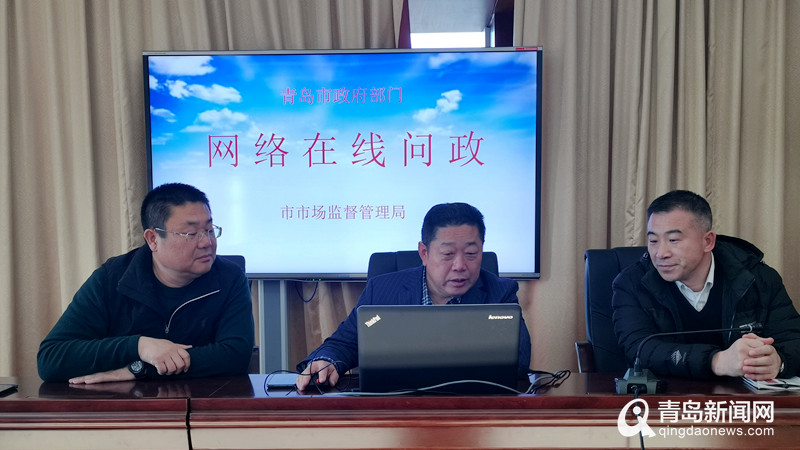 青島市市場(chǎng)監(jiān)管局二級(jí)巡視員唐存禮做客“網(wǎng)絡(luò)在線問政”。
