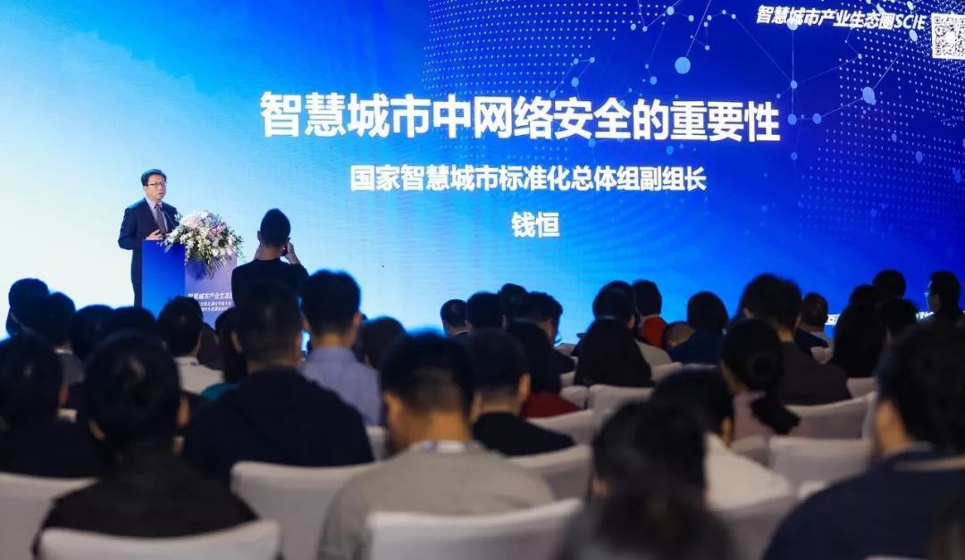 ▲國(guó)家智慧城市標(biāo)準(zhǔn)化總體組副組長(zhǎng)錢恒在“智慧城市生態(tài)建設(shè)論壇”發(fā)表演講