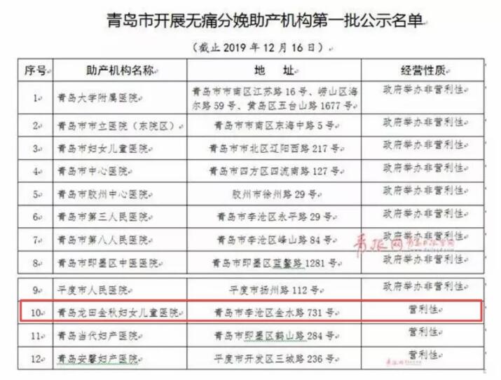 青島市開(kāi)展無(wú)痛分娩助產(chǎn)機(jī)構(gòu)!青島龍?zhí)锝鹎飲D女兒童醫(yī)院