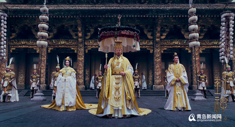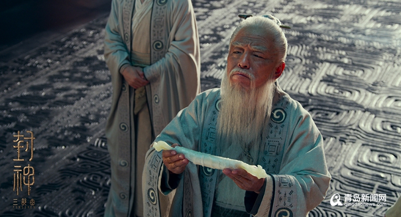 姜子牙(黃渤飾)龍德殿獻(xiàn)封神榜。