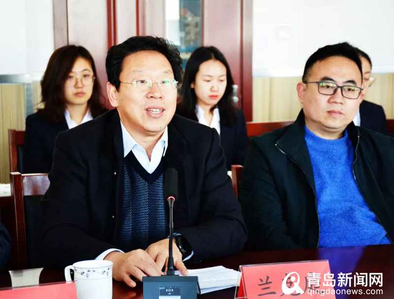 即墨區(qū)教體局主任督學(xué)藍(lán)克庭(左)致歡迎詞