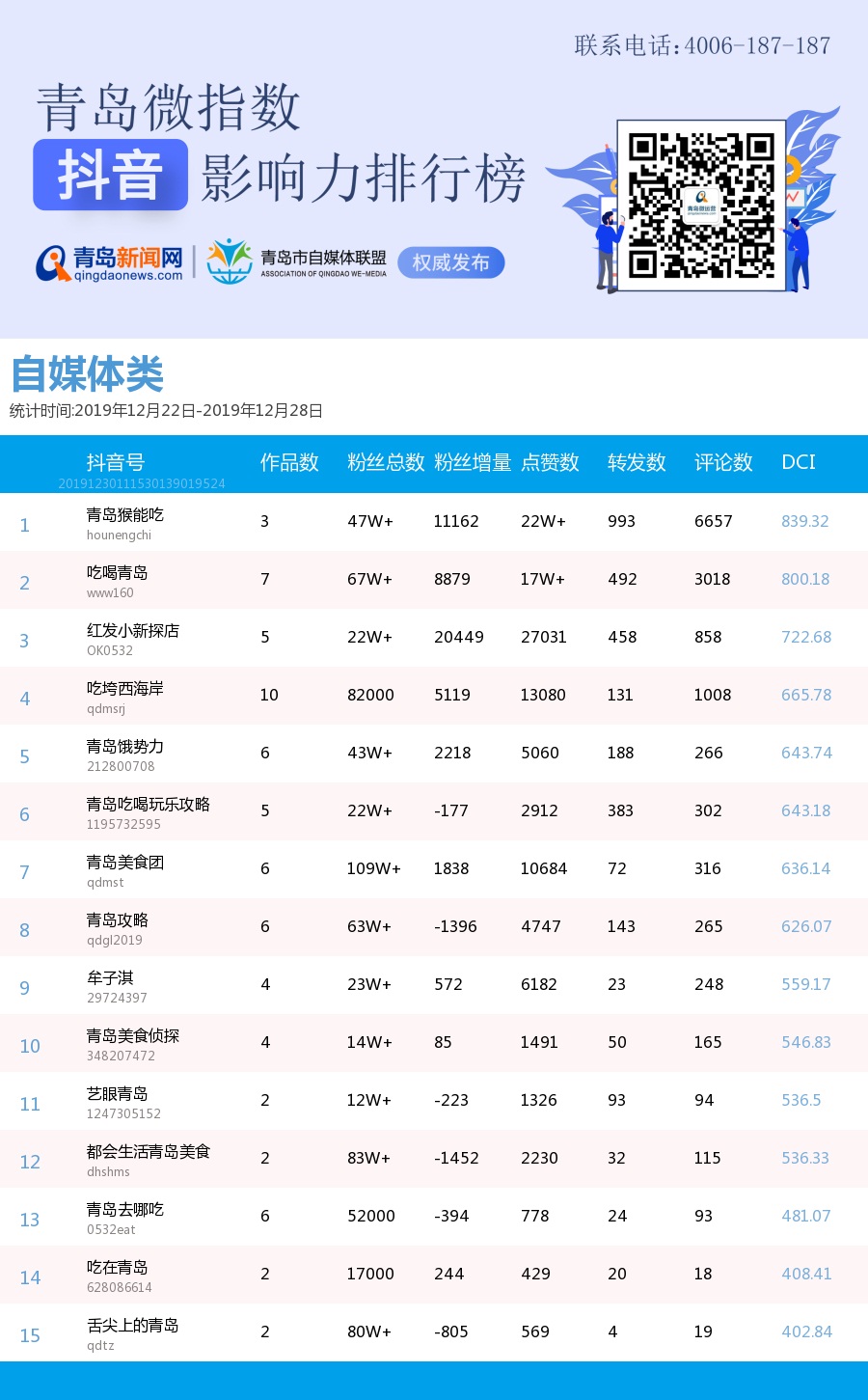后續(xù)我們還會(huì)陸續(xù)添加政務(wù)、媒體、企業(yè)等行業(yè)抖音榜。如果您想和眾多大咖一決高下,那就快快加入我們的“青島微指數(shù)抖音影響力排行榜”吧!