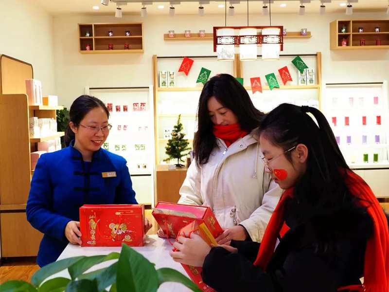 繞城跑步兩圈后,參賽者們匯聚在終點(diǎn)——鴨綠池戲臺,每人領(lǐng)取一張“藏寶圖”,根據(jù)圖上提示,到即墨古城中的店鋪里尋找新年驚喜福袋。許多游客朋友也加入到了“尋寶”的隊(duì)伍中,整個(gè)古城被歡聲笑語籠罩。