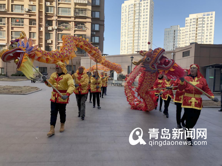 伴著冬日里的陽光,社區(qū)居民們齊聚一堂,在喜慶的《春節(jié)序曲》中,社區(qū)“龍傳人”舞龍隊(duì)拉開了此次文化活動(dòng)的帷幕,金紅兩條九節(jié)蛟龍上下騰飛,蛟龍出水。這18名舞龍演員都是社區(qū)文化志愿者,他們的傾情表演,贏得了圍觀居民的陣陣喝彩。