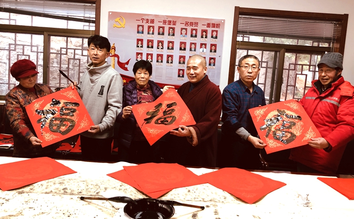 “我們的書(shū)法愛(ài)好者一大早就開(kāi)始忙活了,一天下來(lái)送出去了600多份‘?!帧!比A嚴(yán)管理處處長(zhǎng)匡淼告訴記者,本次送“福”活動(dòng)主要聯(lián)動(dòng)了長(zhǎng)嶺村和返嶺村兩個(gè)村的村民,也得到了華嚴(yán)管理處的三位書(shū)法愛(ài)好者的支持。