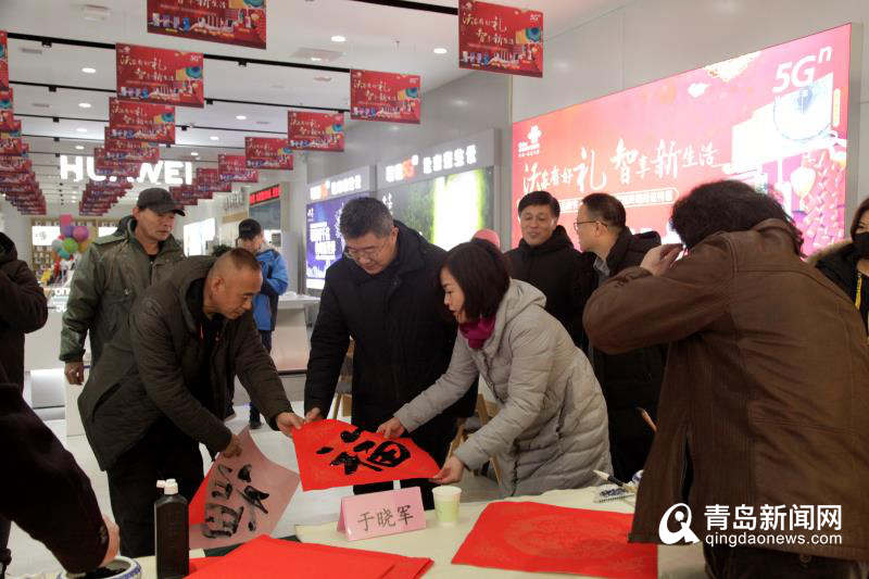 青島新聞網(wǎng)1月15日訊(張嬙 宋延兵)今天上午,青島市總工會(huì)與聯(lián)通青島市分公司在聯(lián)通山東路營(yíng)業(yè)廳共同開(kāi)展送糧行動(dòng),市總工會(huì)領(lǐng)導(dǎo)和青島聯(lián)通公司領(lǐng)導(dǎo)到現(xiàn)場(chǎng),將價(jià)值13萬(wàn)元的花生油、大米等“年貨”送到800余戶(hù)困難職工手中,祝福職工度過(guò)一個(gè)歡樂(lè)祥和的新春佳節(jié)?;顒?dòng)現(xiàn)場(chǎng)還開(kāi)展了“送萬(wàn)福·進(jìn)萬(wàn)家”書(shū)法公益活動(dòng),青島市美協(xié)副主席于曉軍等島城部分書(shū)法名家現(xiàn)場(chǎng)潑墨揮毫,為廣大職工送福送對(duì)聯(lián)。