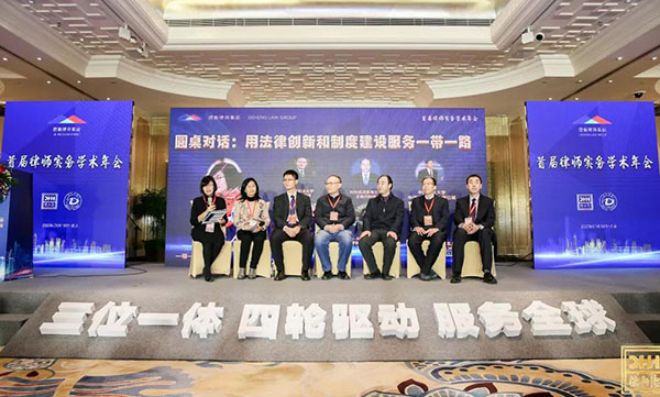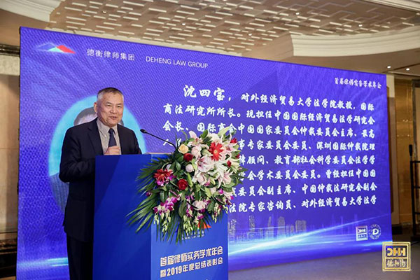 乘優(yōu)良學術(shù)之風,隨專家破浪前行。學術(shù)水平的提高離不開教授專家的指導與支持。在論文報告與教授點評環(huán)節(jié)之后,“學術(shù)顧問委員會成立儀式暨第一次學術(shù)會議”在集團合伙人會議執(zhí)行主席胡明主持下盛大召開。為不斷加深理論研究水平,用理論研究賦能律師工作實踐,推進“一帶一路”法律服務體系建設,德衡律師集團決定成立學術(shù)顧問委員會并鄭重聘用知名法學家沈四寶教授擔任委員會首席學術(shù)顧問。沈四寶教授致答謝詞,對德衡律師集團合伙人會議主席欒少湖倡議舉辦本次學術(shù)年會予以高度評價,他表示非常樂意與眾多優(yōu)秀的法學家們,與2000余名德衡律師集團精英律師們一起,共同探討,共同實踐。中國人民大學副院長杜煥芳教授和對外經(jīng)貿(mào)法學院黃勇教授分別發(fā)表了主題演講。緊隨其后又開展了“用法律創(chuàng)新和制度建設服務‘一帶一路’”圓桌對話,中國政法大學趙威教授、中國政法大學中德法學院院長謝立斌教授、對外經(jīng)貿(mào)大學王曉川教授、中央財經(jīng)大學蔡昌教授、大連大學法學院副院長馬秋教授、北京工商大學法學院副院長俞亮教授六位法學界專家匯聚一堂,在中國政法大學一帶一路研究院張麗英院長的主持下,就“一帶一路”法律服務機遇與挑戰(zhàn)的相關(guān)問題深入交換了意見。六位法學大家整個對話妙語頻出,為在場嘉賓貢獻了一場智慧與思考的盛宴,引發(fā)全場的熱烈討論和深邃思考,當沈四寶教授與20余位法學家共同揭起“‘一帶一路’法學家論壇”成立牌匾之時,實務學術(shù)年會的氛圍推向了高潮。