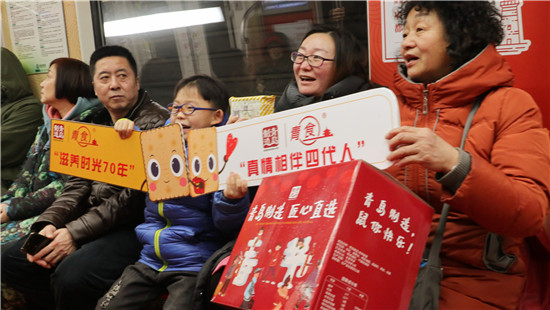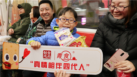 同樣的,地鐵上的另一家祖孫三代人說出了對(duì)青食的愛,“鈣奶餅干是過年必買的,大人的青啤,小孩的青食,這都是過節(jié)標(biāo)配,送親戚朋友也受歡迎。”被問及家里都會(huì)置辦哪些青食年貨,姥姥忙著說到,“那可太多了,太多了,鈣奶餅干、面粉、香油……連花生醬我都買青食的,我可是老粉絲了。”