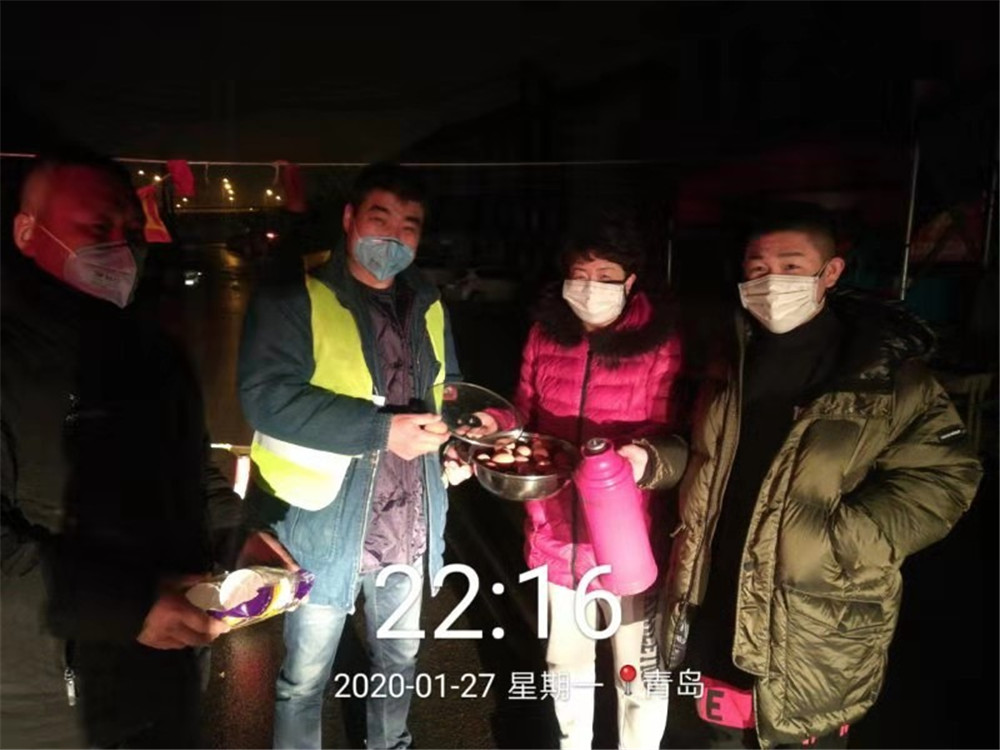 韓世昊和媽媽王曌虹端著鍋、抱著熱水瓶來到了東女姑山社區(qū)的門崗?!笆迨?,你們值班太累了,快喝口水、吃個雞蛋歇歇!”,娘倆的到來讓饑腸轆轆的值班人員們很意外、很感動,夜深了,大家杯里的水早涼透了。