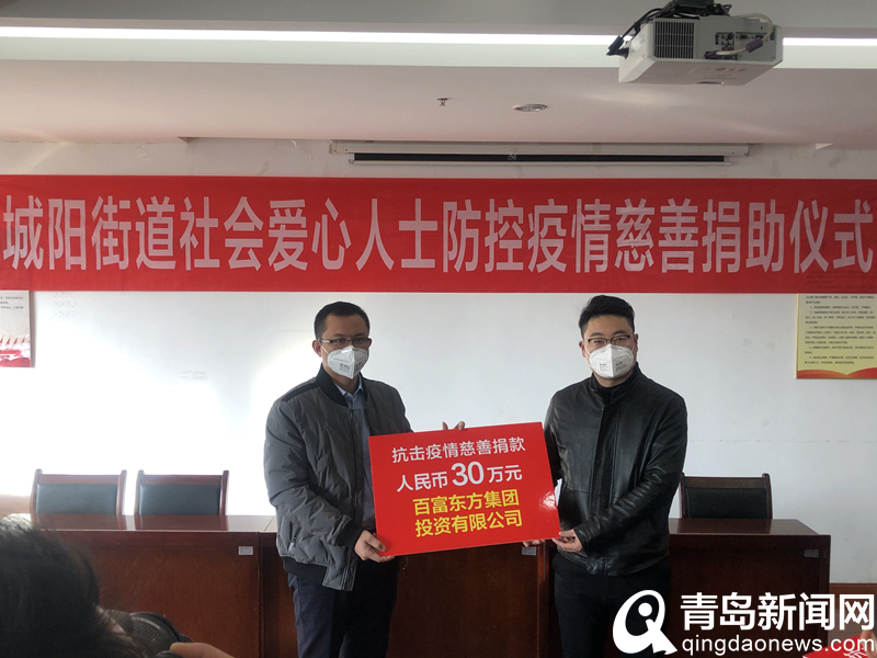 百富東方集團投資有限公司向城陽街道捐贈三十萬人民幣抗擊疫情。