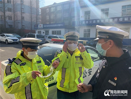 “非常不好意思,我找來一圈也沒買到酒精。”侯先生說,四流中路中隊指導員崔風正接過防護用品,非常感動。交警小伙子戴護目鏡,增添了一份防護和安心。警民一心,這股暖意激勵著堅守在崗位的交警們,他們會把這些防護用品用在最需要的地方。