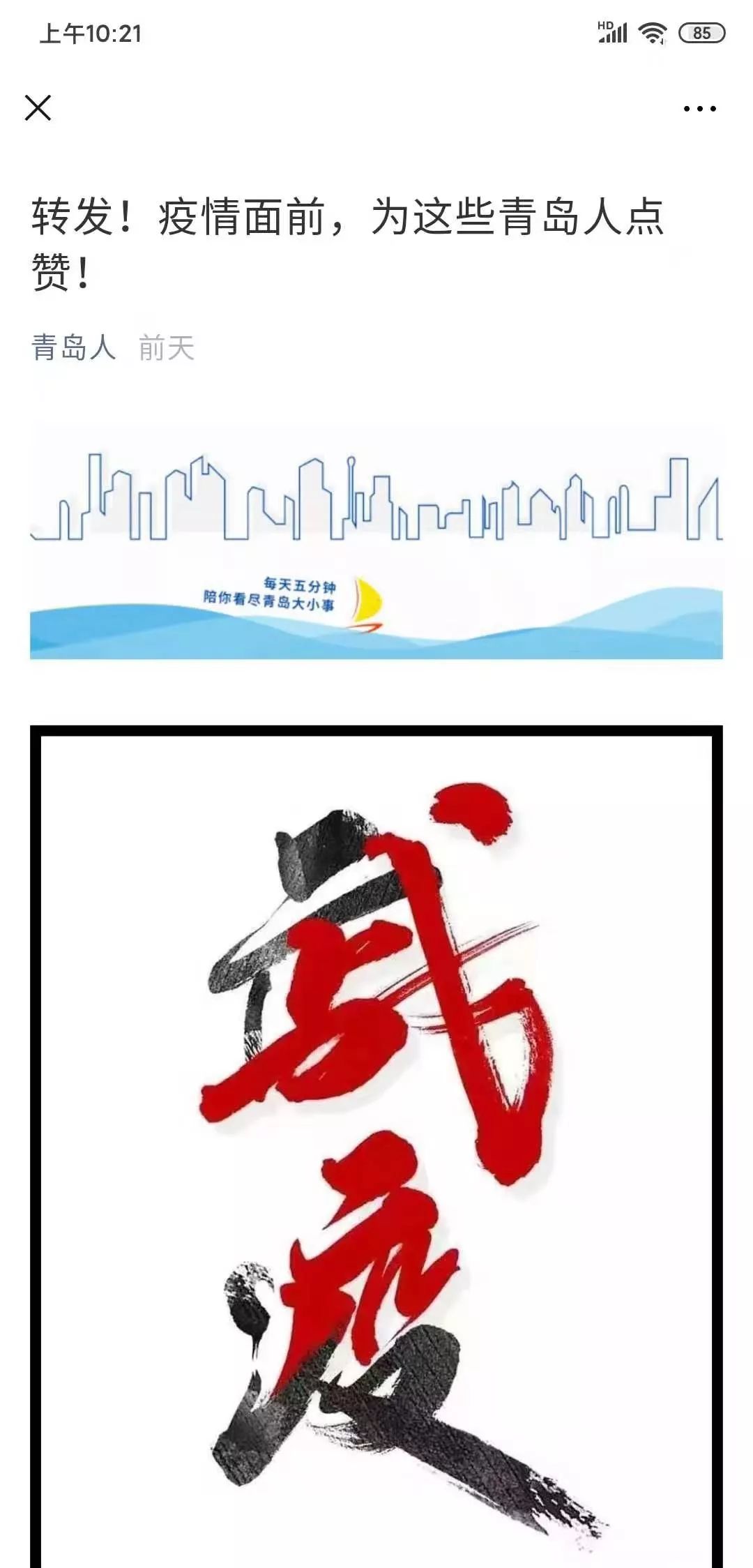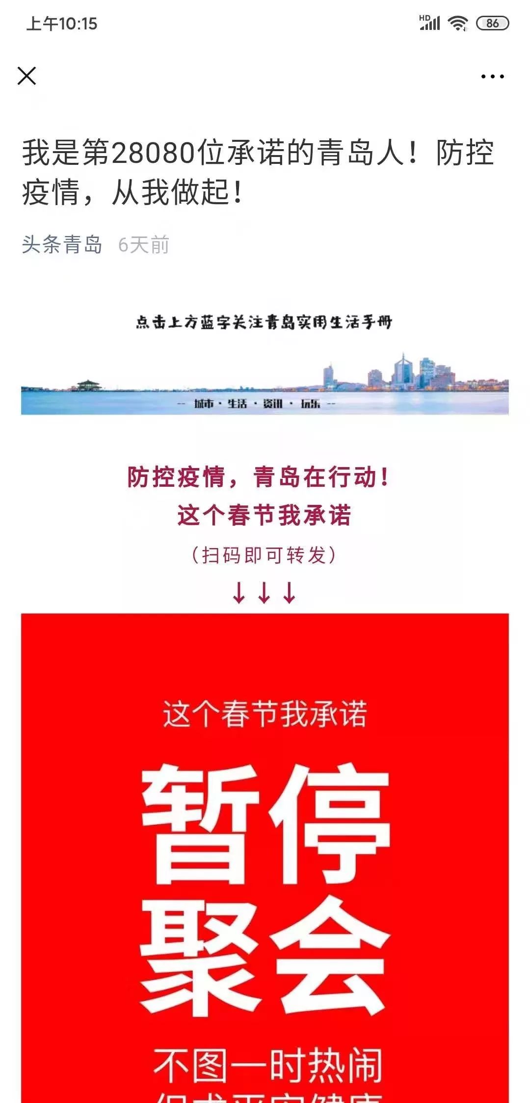 在抗擊疫情這場(chǎng)戰(zhàn)役里,除了堅(jiān)守在一線的工作人員,我們還看到了自媒體人的責(zé)任和擔(dān)當(dāng),積極發(fā)聲,同頻共振,創(chuàng)新傳播形式,貢獻(xiàn)力所能及的力量,讓大家切實(shí)感受到青島城市溫度。沒有一個(gè)冬天不會(huì)過去,沒有一個(gè)春天不會(huì)到來,加油!
