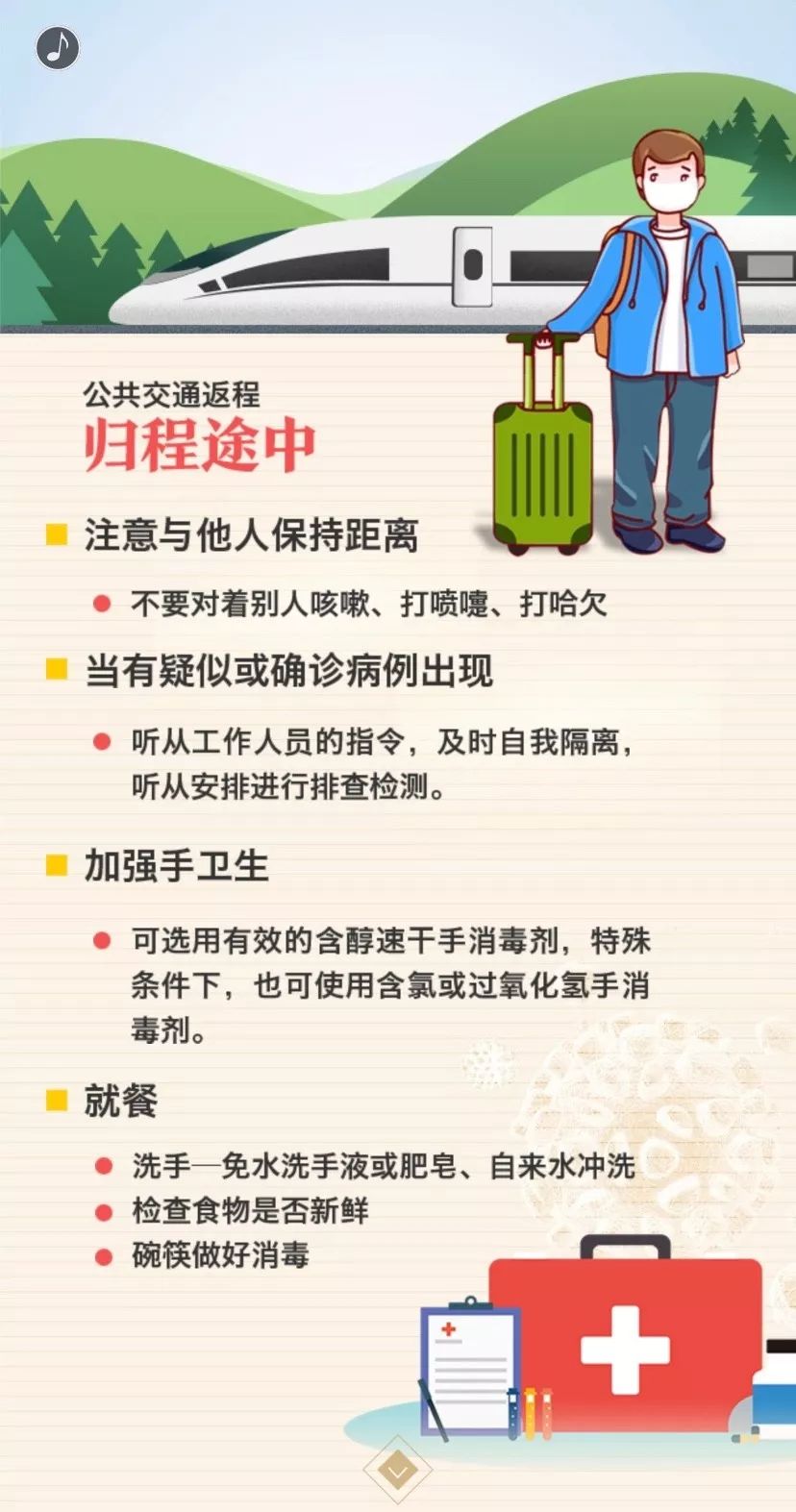 近日,不少人將踏入返程,無論是您乘坐飛機、火車,還是自駕,途中防疫至關(guān)重要,返程途中注意什么?這份返程防疫手冊請收好。