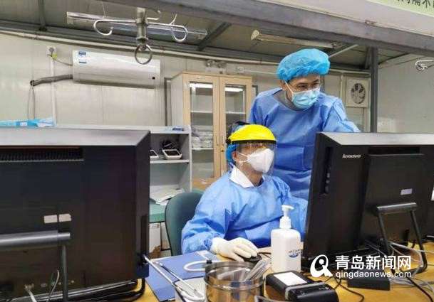 青島大學(xué)附屬醫(yī)院鞠輝和同事正在工作
