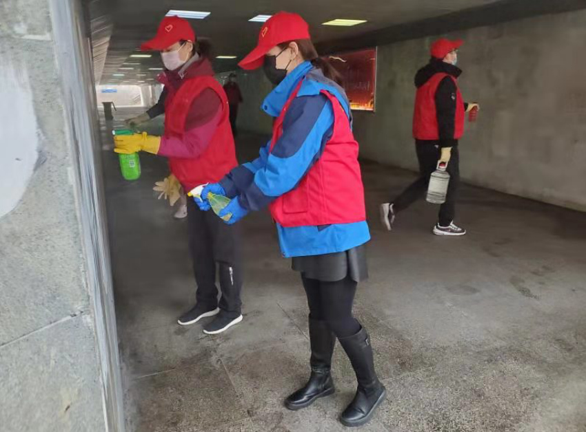 為了將防控工作做得更細(xì)、更實(shí),四人姐妹花出謀劃策,想盡辦法。針對(duì)轄區(qū)地下通道過往人流量較大,相對(duì)封閉、空氣不流通等特點(diǎn),她們提議獻(xiàn)策,由支部黨員利用周末時(shí)間進(jìn)行噴灑消殺,降低安全隱患。她們和支部其他黨員一起完成了轄區(qū)7處地下通道、面積1065平方米的消殺。身處一線的她們說在前、干在前,多次協(xié)助進(jìn)行地下通道管理房和河道管理房的消殺工作。
