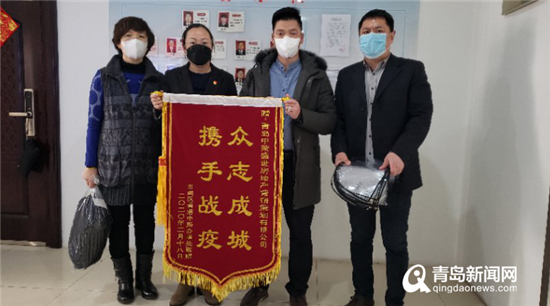 17日上午,在青島市李滄區(qū)李村街道南山社區(qū)的會(huì)議室里,社區(qū)黨委書記王偉將一幅繡有“雪中送炭共同抗疫”的錦旗,送到青島中榮盛世房地產(chǎn)營(yíng)銷策劃有限公司董事長(zhǎng)趙維城手中。他們捐贈(zèng)的戰(zhàn)疫防護(hù)帽,為社區(qū)志愿者擋起了一道更加安全的防疫屏障。